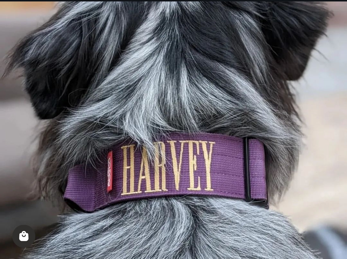 Get your collar with a name, slogan or logo to make it unique to your pooch. Add their IG handle or phone number below their name so they can be easily found.
